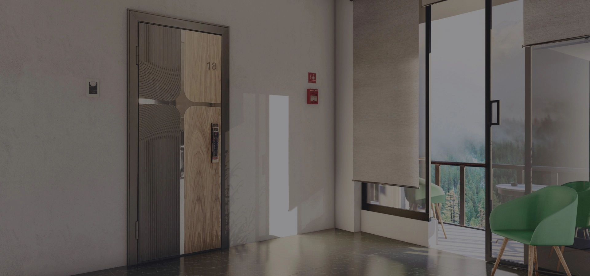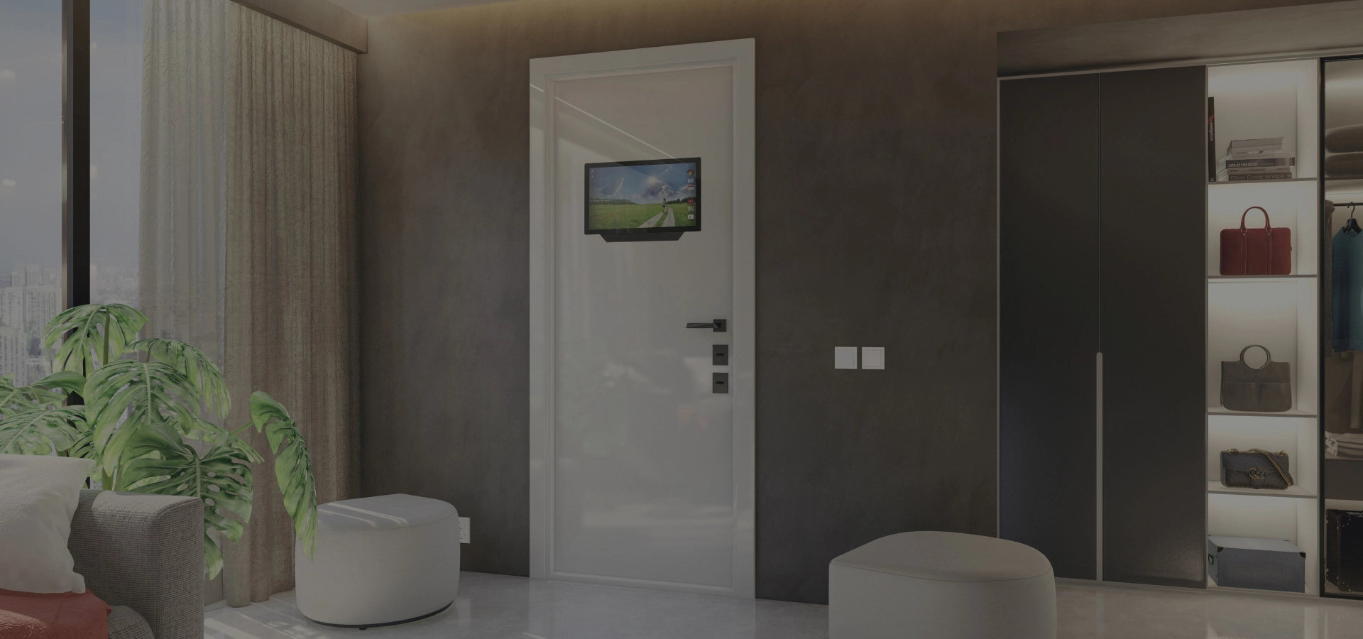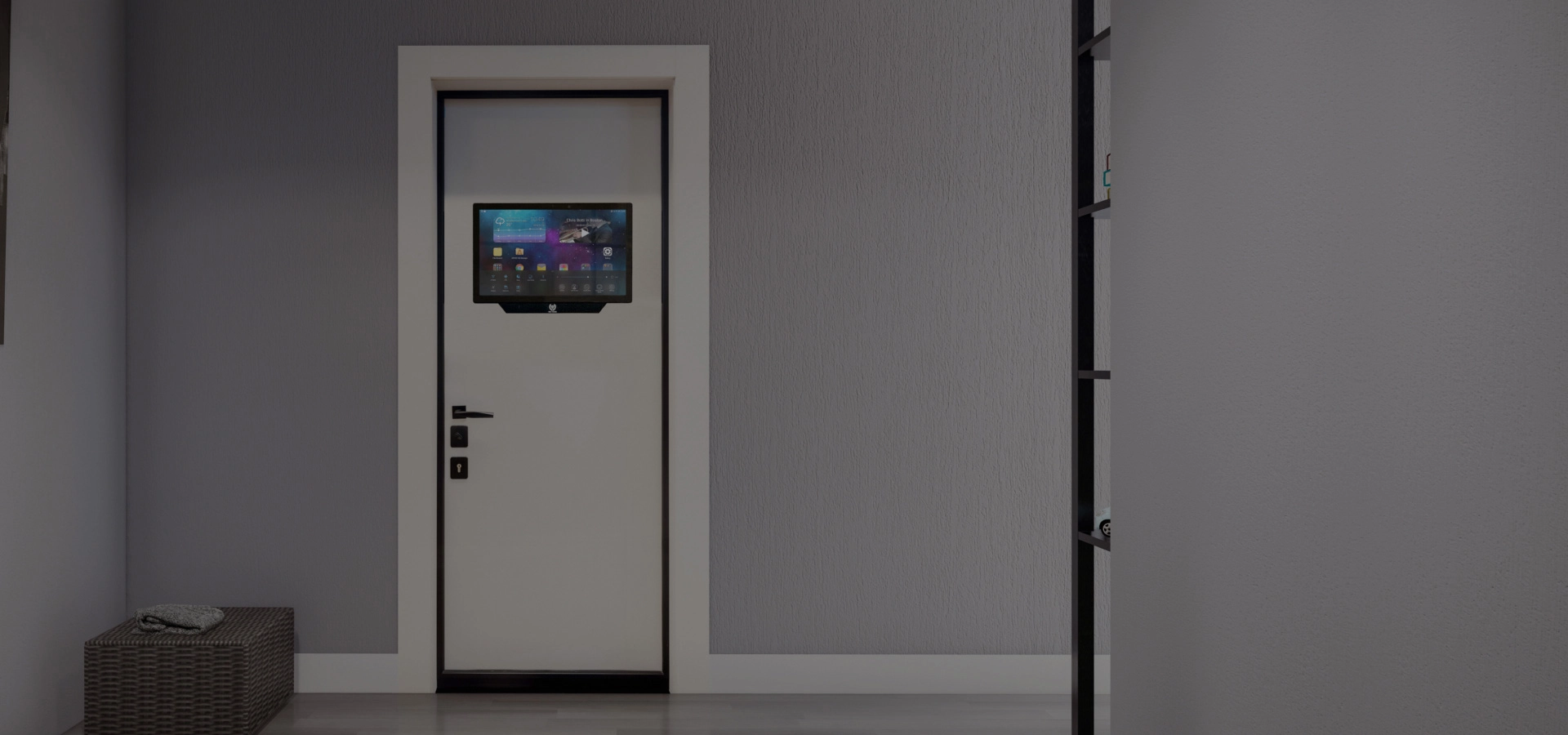 Электромеханические двери с интегрированной биометрией, монитором, видеорегистратором и домофоном.
